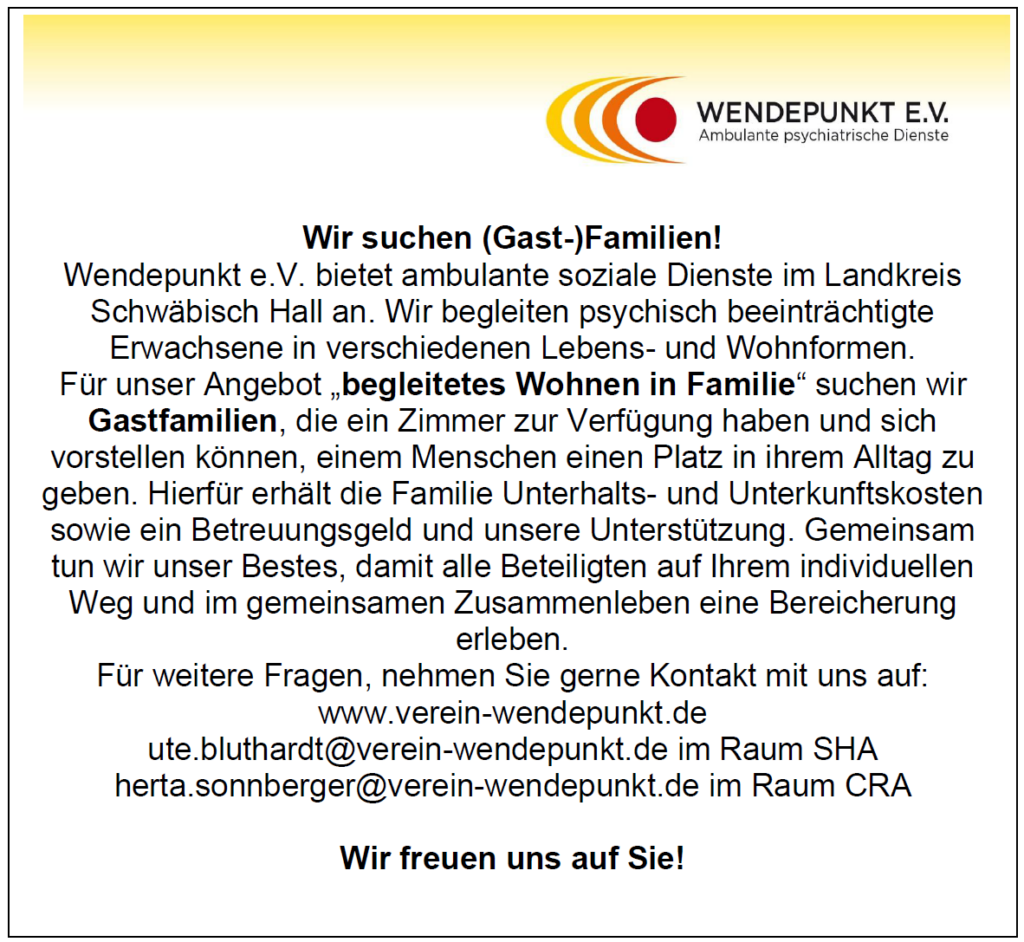 ist ein spezialisierter Anbieter für Assistenzleistungen in der sozialpsychiatrischen Versorgung im Landkreis Schwäbisch Hall.